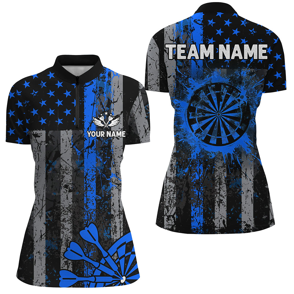 Custom Blue Grunge US Flag Patriotic Darts Shirt For Women, Retro Darts Board Darts Team Jerseys TDM2184