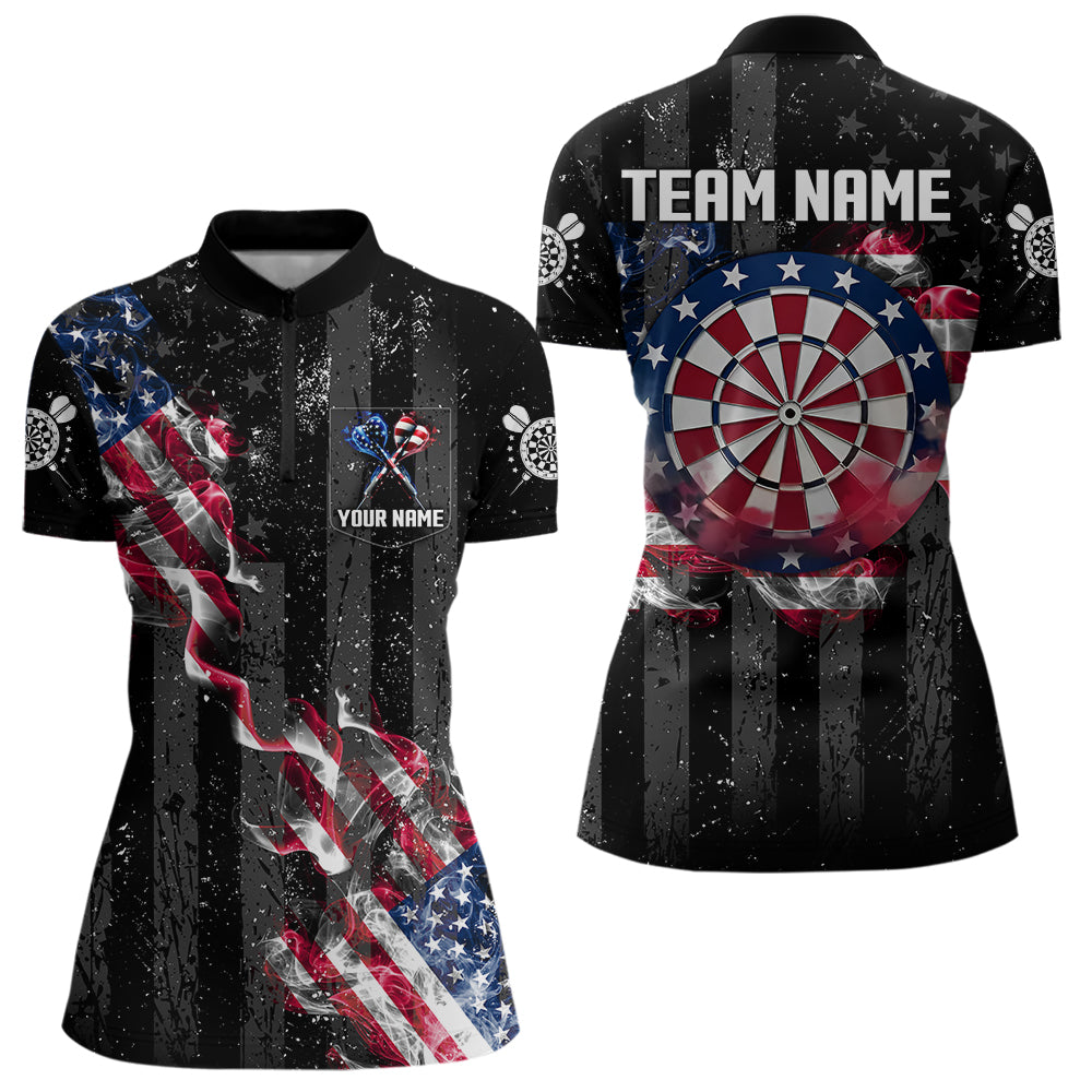 Custom US Flag Smoke Dart Shirt For Women, Patriotic Dart Jersey Pocket Option TDM3514