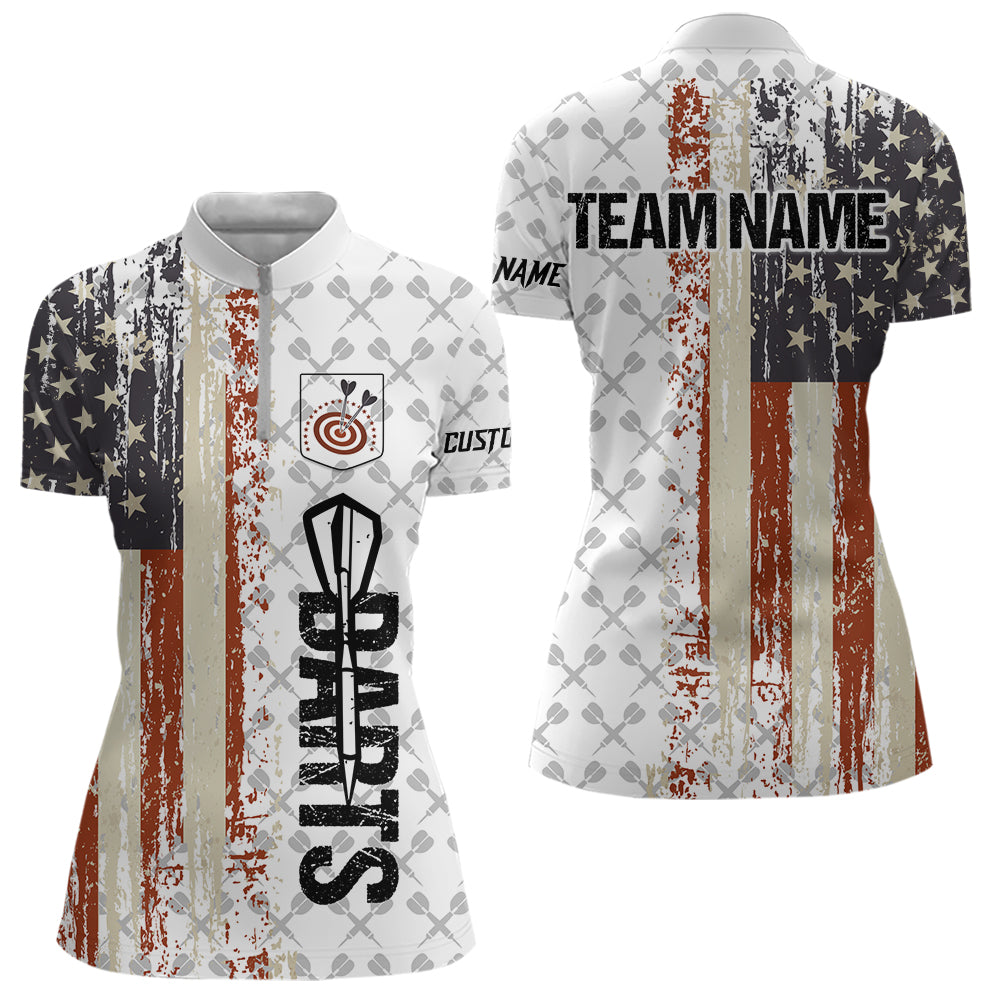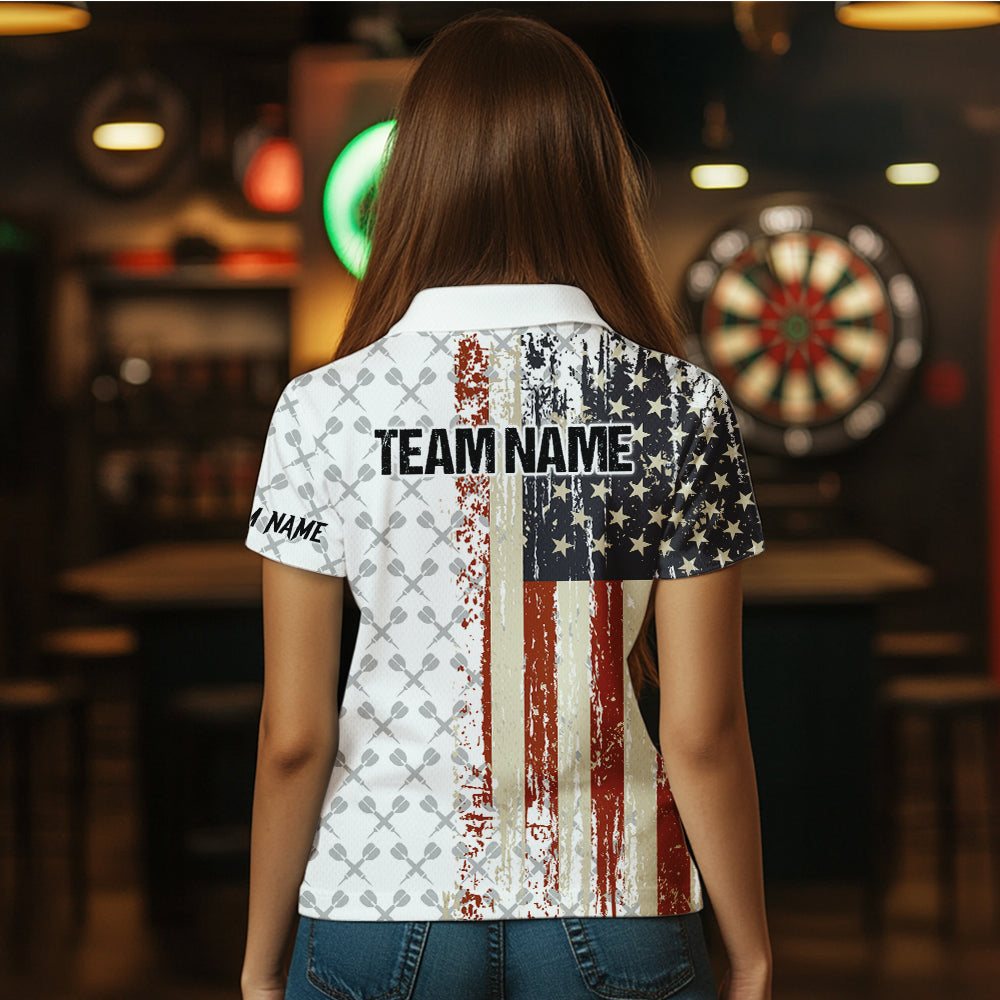Grunge Retro US Flag Custom Darts Shirt For Women, Darts Jersey Pocket Option TDM3797