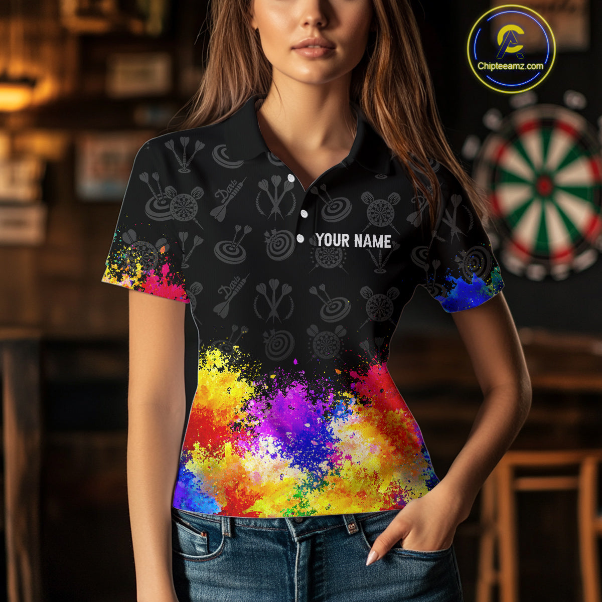 Funny Dartboard Colorful Grunge Dart Shirts For Women | Darts Team Jerseys – Polo & Quarter Zip TDM3964