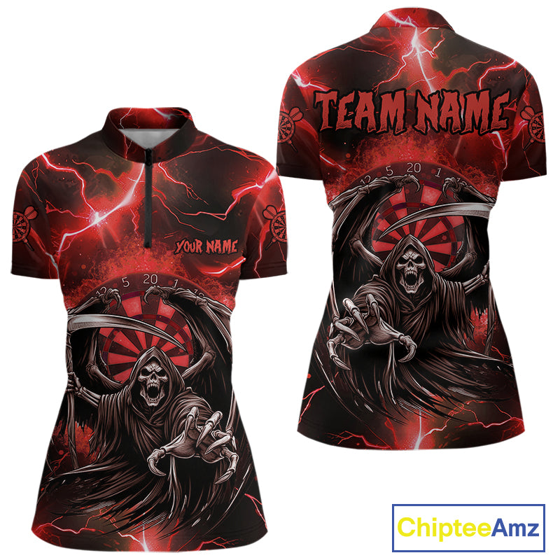 Red Grim Reaper Darts Shirt With Pocket Option For Women Custom Darts Jersey TDM3967