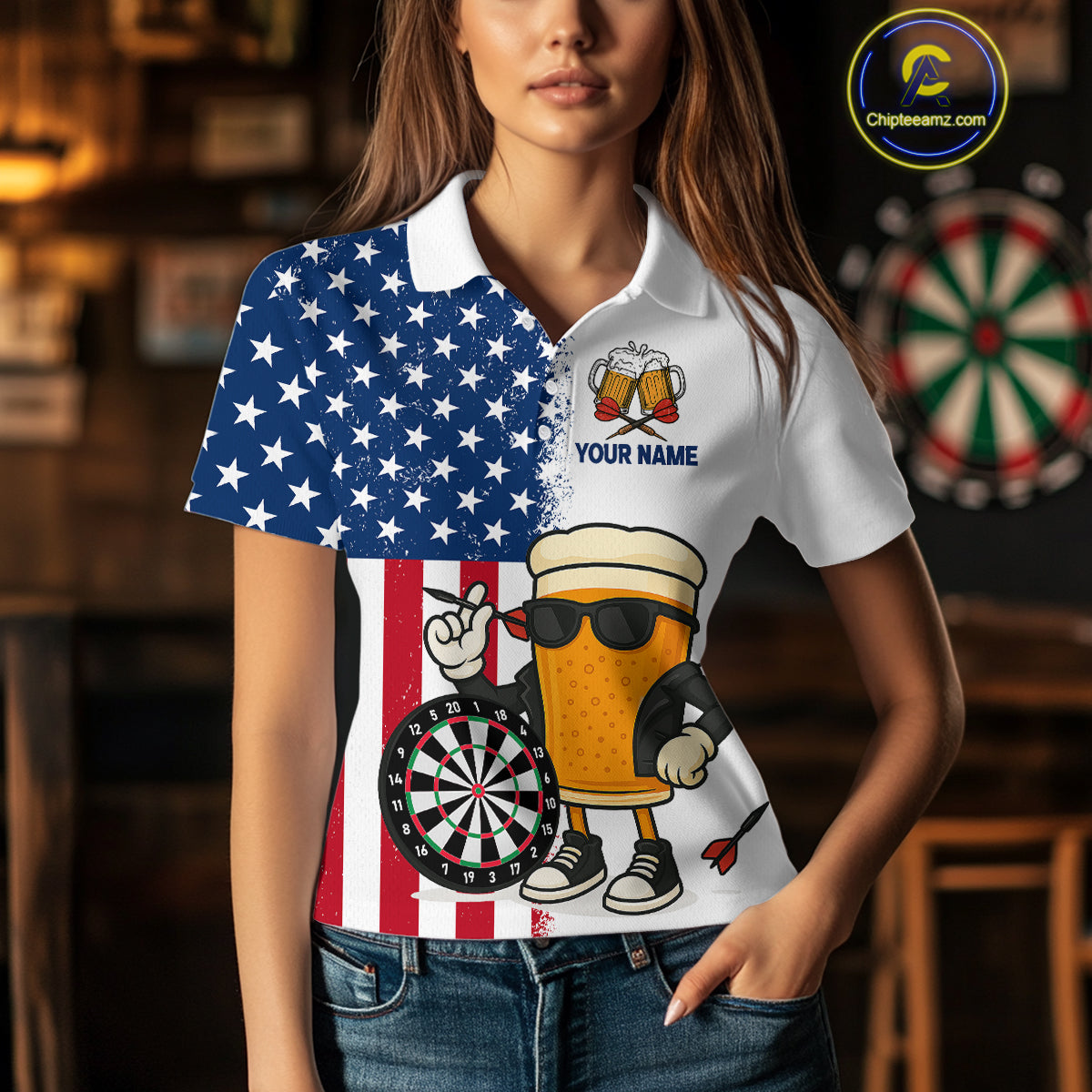 Funny Beer American Flag Dart Shirts For Women Custom Patriotic Darts Team Jerseys Polo & 1/4 Zip TDM4177