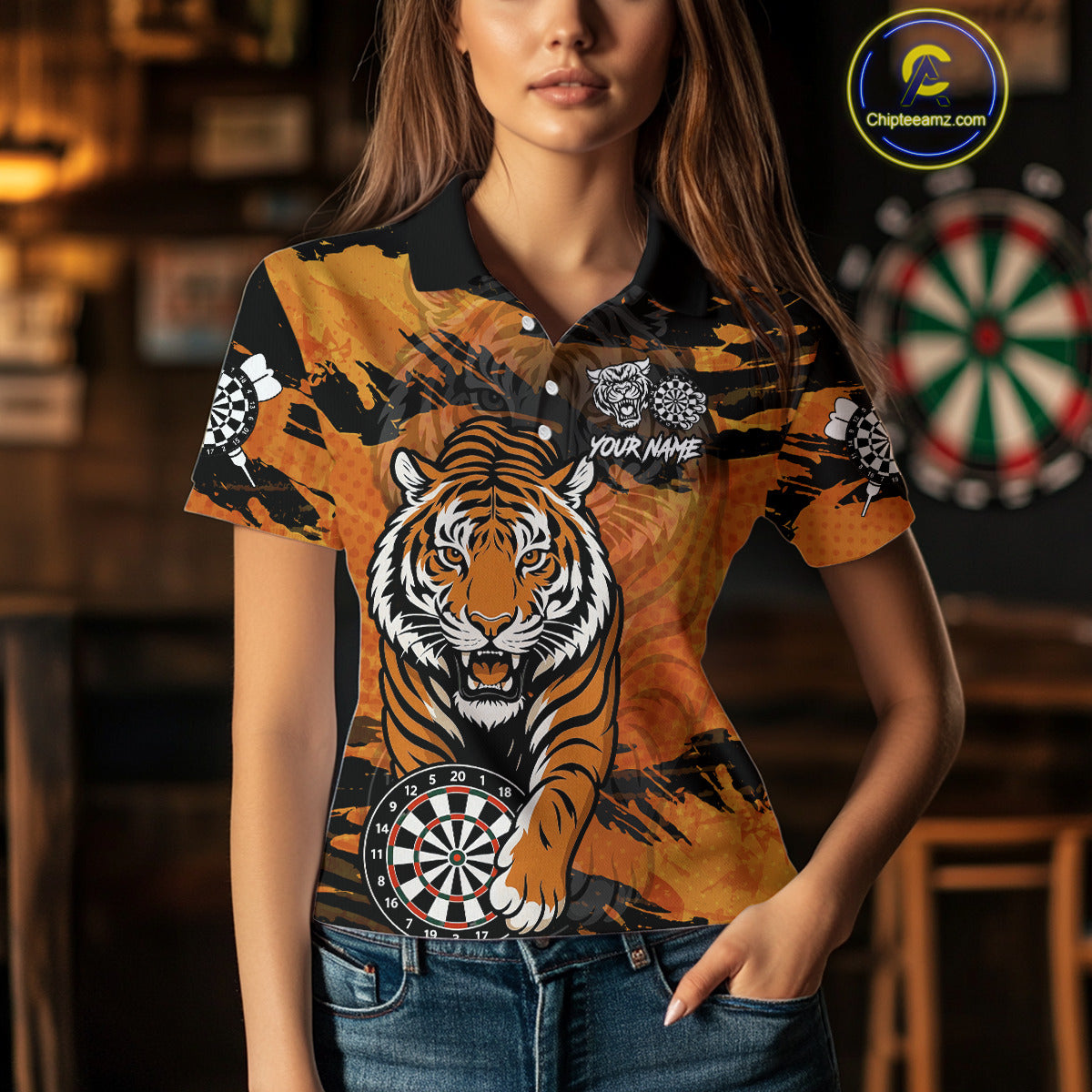Personalized Black And Orange Tiger Darts Shirt For Women Custom Darts Jersey Team Polo & 1/4 Zip TDM4275