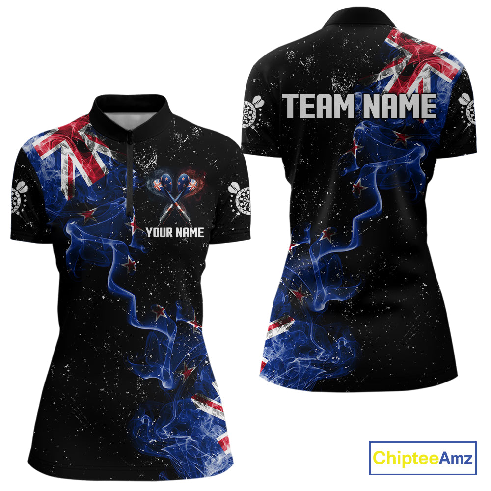 Customized Grunge New Zealand Flag Smoke Darts Polo & 1/4 Zip, Patriotic Darts Jerseys For Women TDM4289