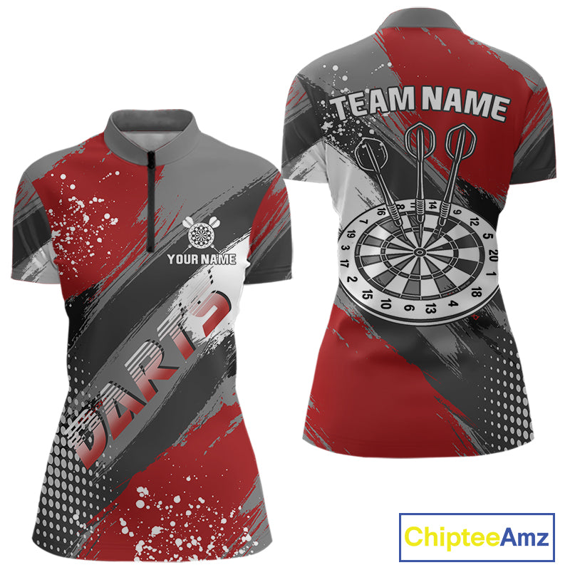 Personalized Red And Grey Grunge Darts Shirt For Women Custom Darts Jerseys Team Polo & Quarter Zip TDM4337