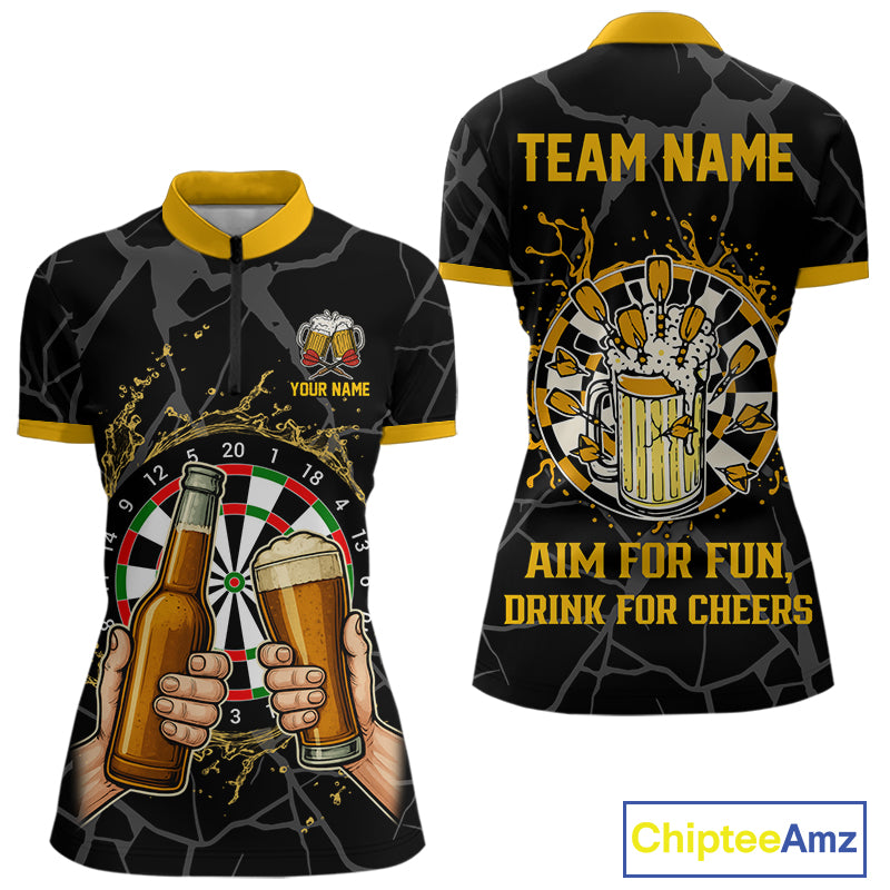 Funny Darts And Beer Aim For Fun Drink For Cheer Custom Women Darts Shirts, Drinking Darts Jerseys TDM4380