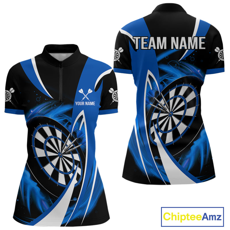Personalized Blue And Black Darts Shirt For Women Custom Darts League Team Polo & 1/4 Zip Jerseys TDM4405