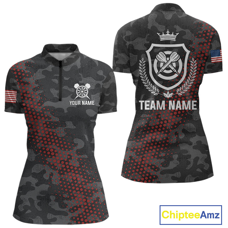 Red And Grey Camo Darts Shirt For Women Custom Camouflage Darts Team Jerseys Polo & Quarter Zip TDM4432
