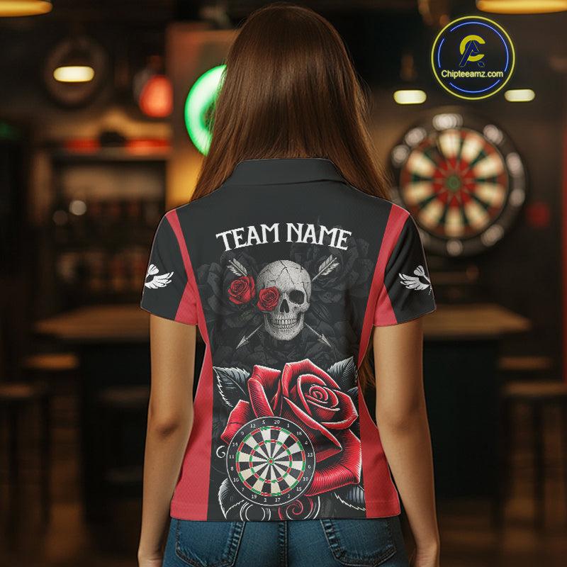 Black And Red Dartboard Roses And Skull Darts Shirt For Women Custom Darts Jersey Outfit, Dart Gift TDM4433