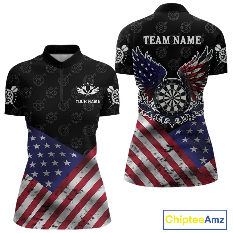 Personalized American Flag Dartboard Wings Darts Shirt For Women, Patriotic Darts Team Jerseys TDM4434