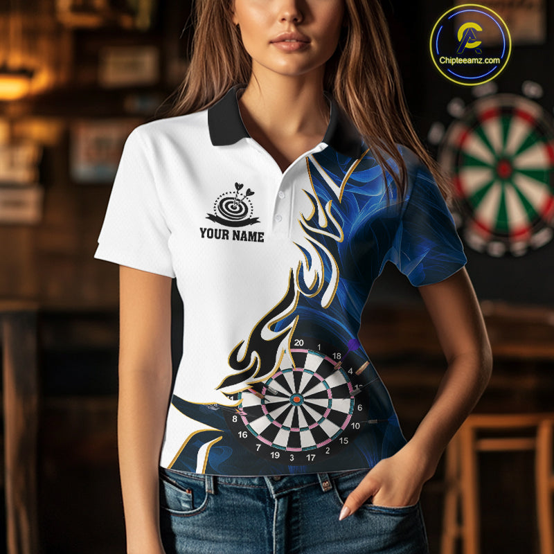 Personalized Blue Flaming Darts Jersey For Women Custom Darts Team Shirts Polo & Quarter Zip TDM4512