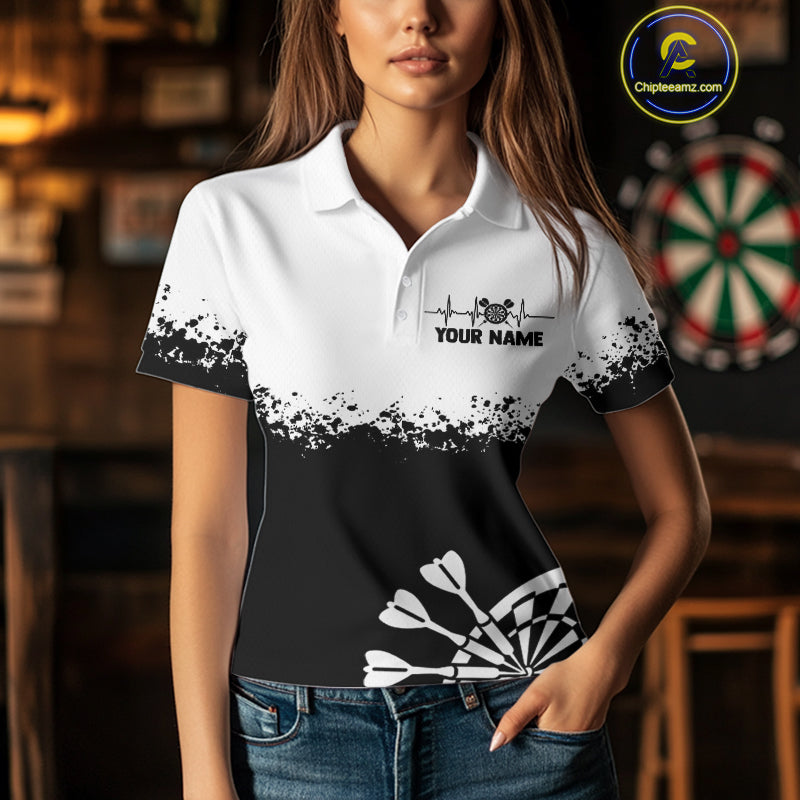 Personalized White Black Heartbeat Darts Shirt For Women Custom Grunge Darts Jersey Polo & 1/4 Zip TDM4530