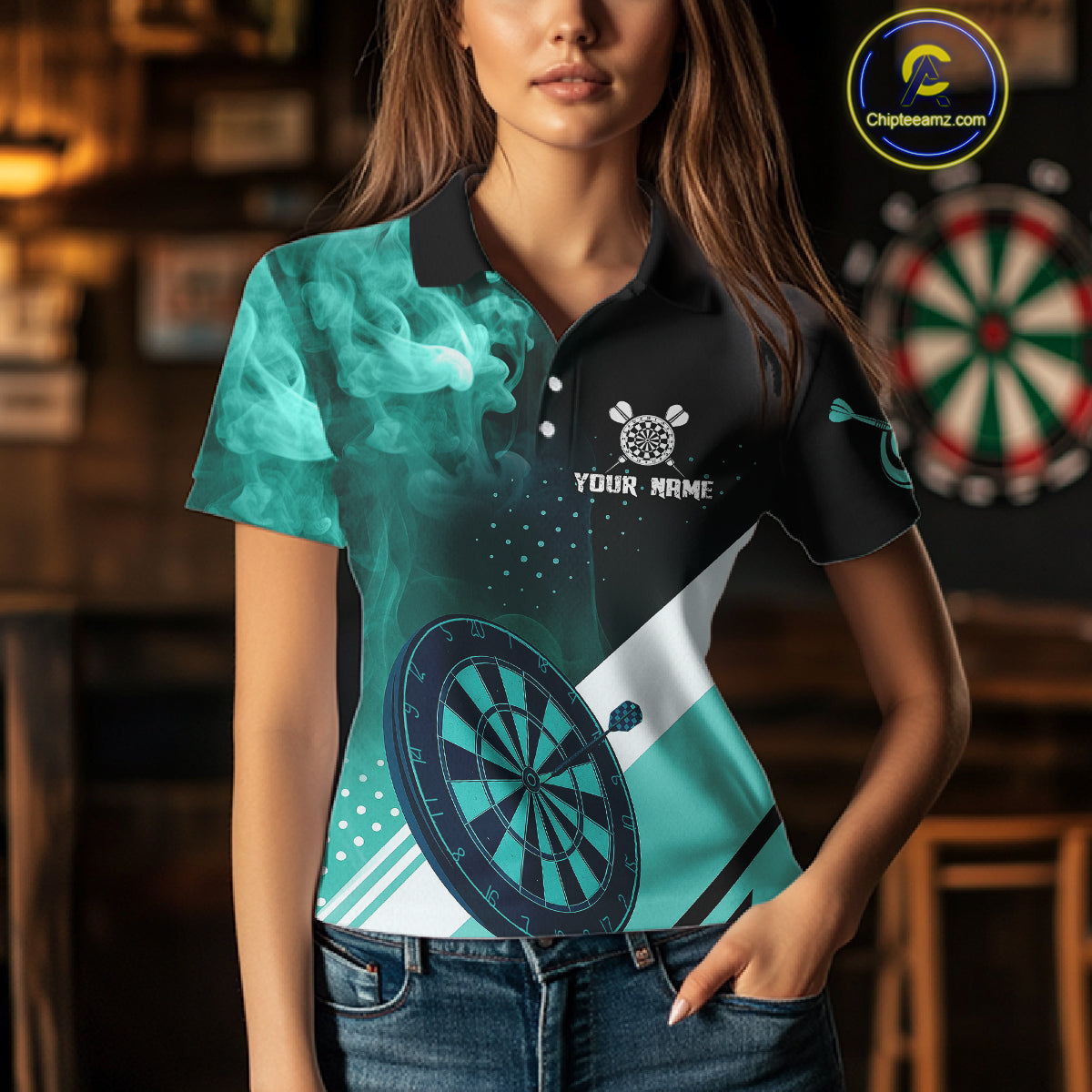 Personalized Turquoise Smoke Darts Shirt For Women Custom Darts Jersey Team Polo & 1/4 Zip Outfit TDM4534