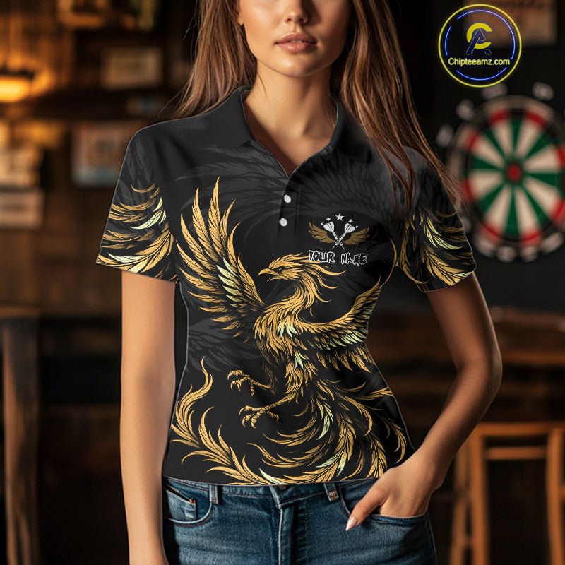 Personalized Phoenix Dartboard Wings Women's Dart Shirts Custom Yellow And Black Darts Team Jerseys TDM4585