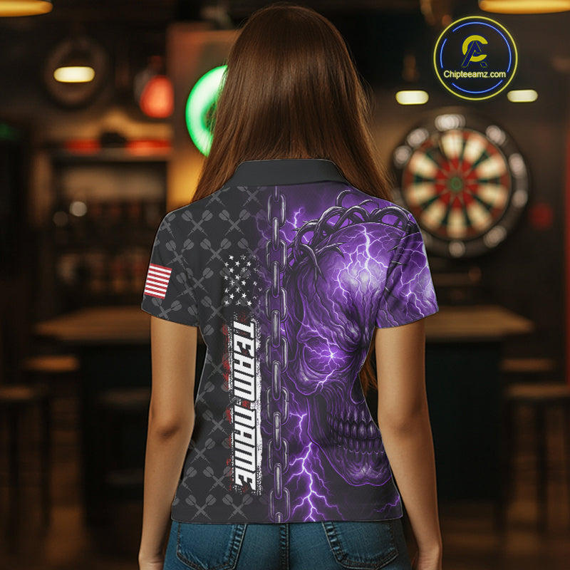 Personalized Purple Darts Skull Thunder Lightning Darts Shirt For Women, US Flag Darts Team Jersey TDM4614