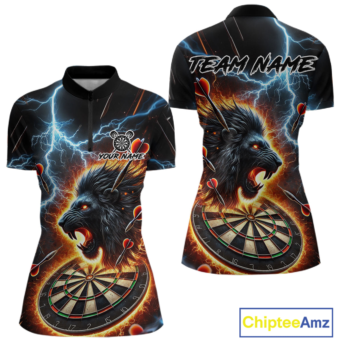 Personalized Thunder Lightning Lion Darts Shirt For Women Custom Darts League Jersey Polo & 1/4 Zip TDM4619