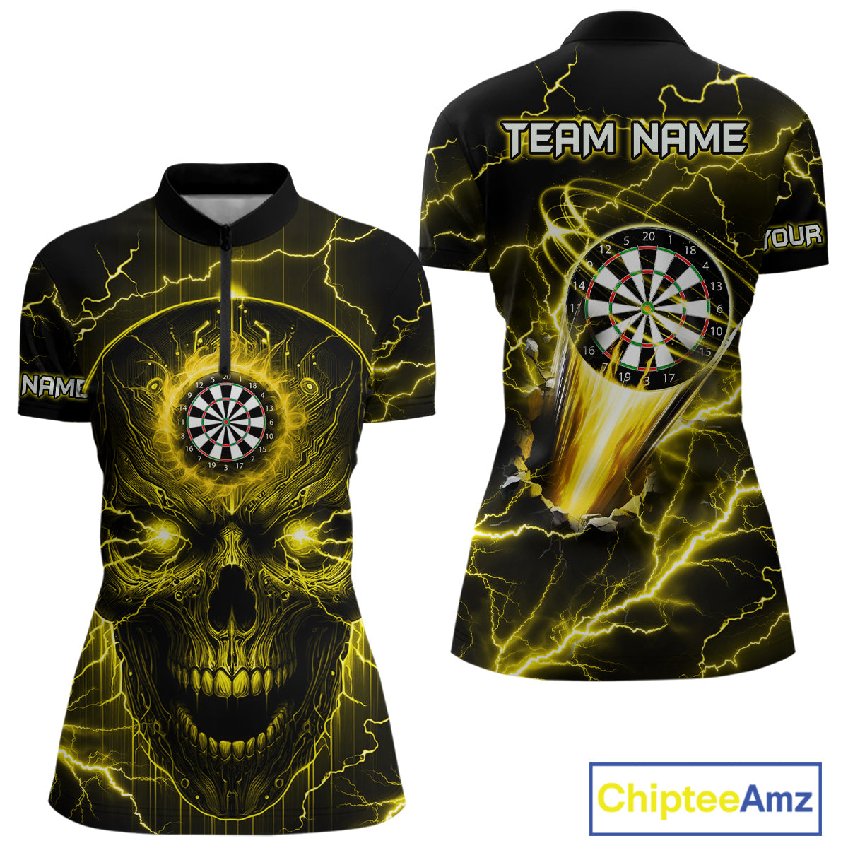 Personalized Yellow Darts Skull Shirt For Women Custom Polo & 1/4 Zip Lightning Thunder Darts Jersey TDM4622