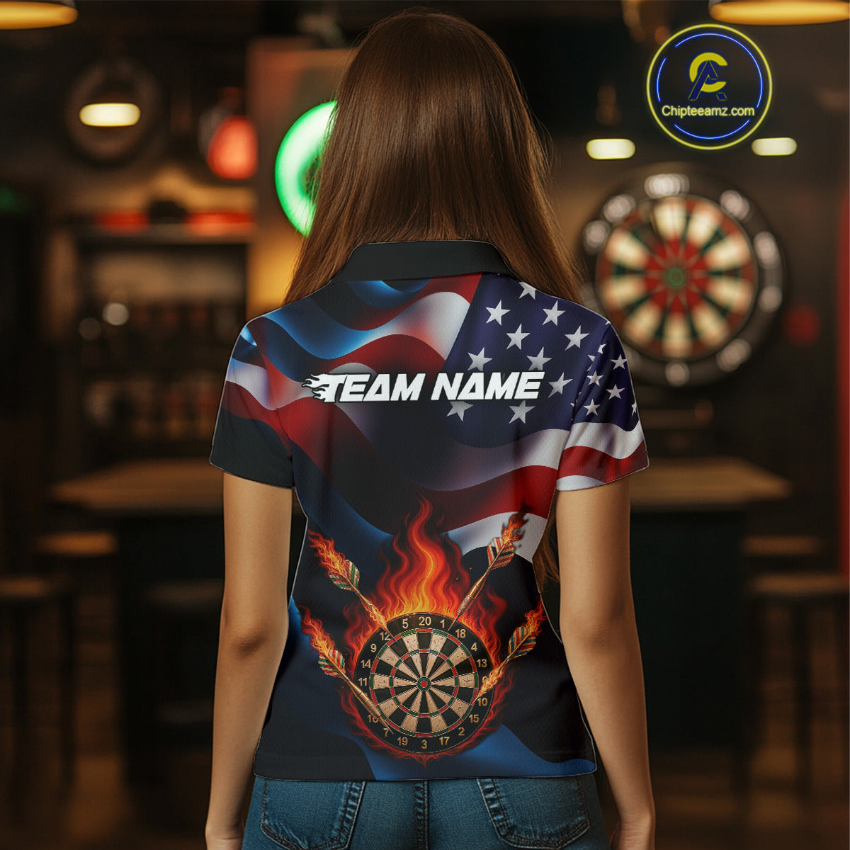 Personalized Flaming Dartboard American Flag Darts Shirt For Women Custom Patriotic Dart Team Jersey TDM4682