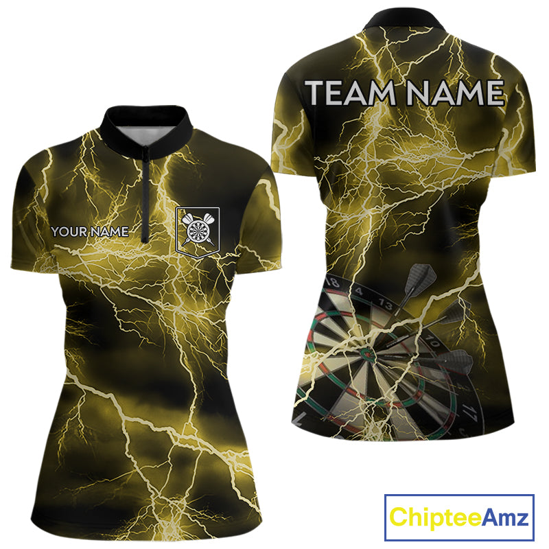 Thunder Lightning Yellow Darts Shirt With Pocket For Women Custom Dart Jersey TDM4695