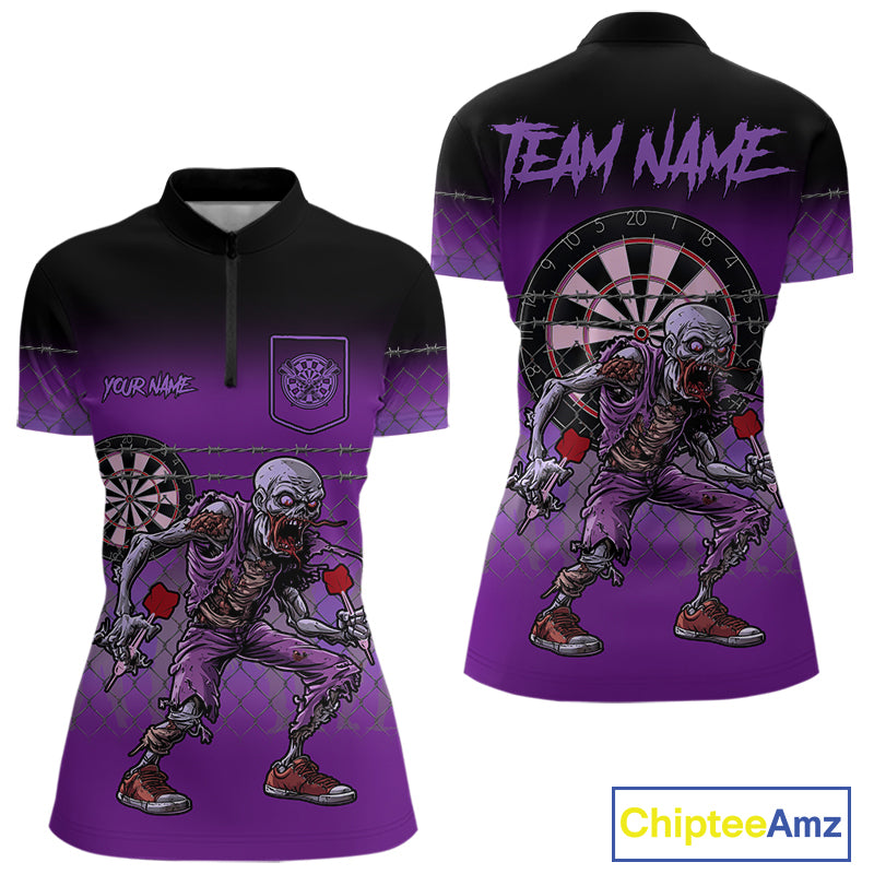 Custom Zombie Purple Dart Shirt With Pocket Option For Women, Dart Team Jerseys TDM4772
