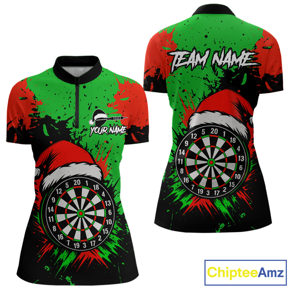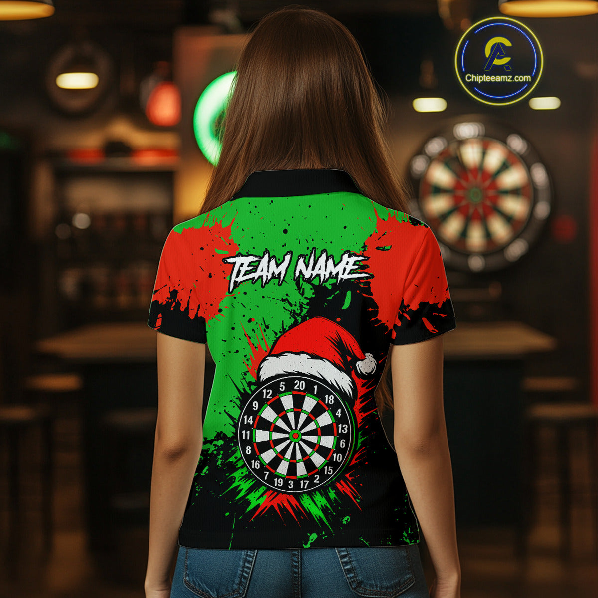 Funny Green And Red Splash Santa Christmas Darts Shirt For Women Custom Xmas Gifts Darts Jersey TDM4847