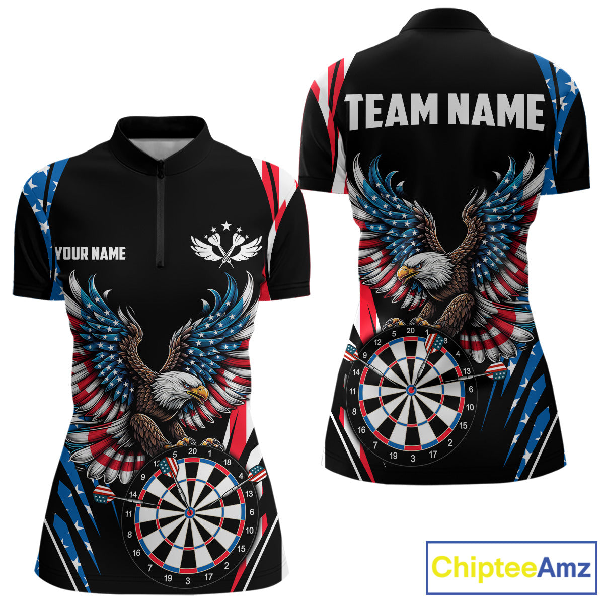 Personalized American Flag Eagle Patriotic Darts Shirt For Women Custom Darts Jersey Polo & 1/4 Zip TDM4859