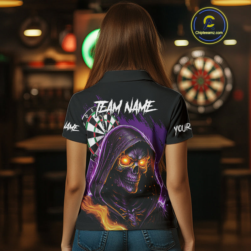 Personalized Purple Death Skeleton Fire Dart Shirt For Women Custom Skull Dart Jersey Polo & 1/4 Zip TDM4893