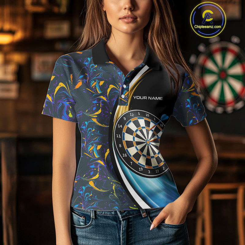Funny Floral Marbling Pattern Custom Darts Shirt For Women, Team Polo & Quarter Zip Darts Jersey TDM4916