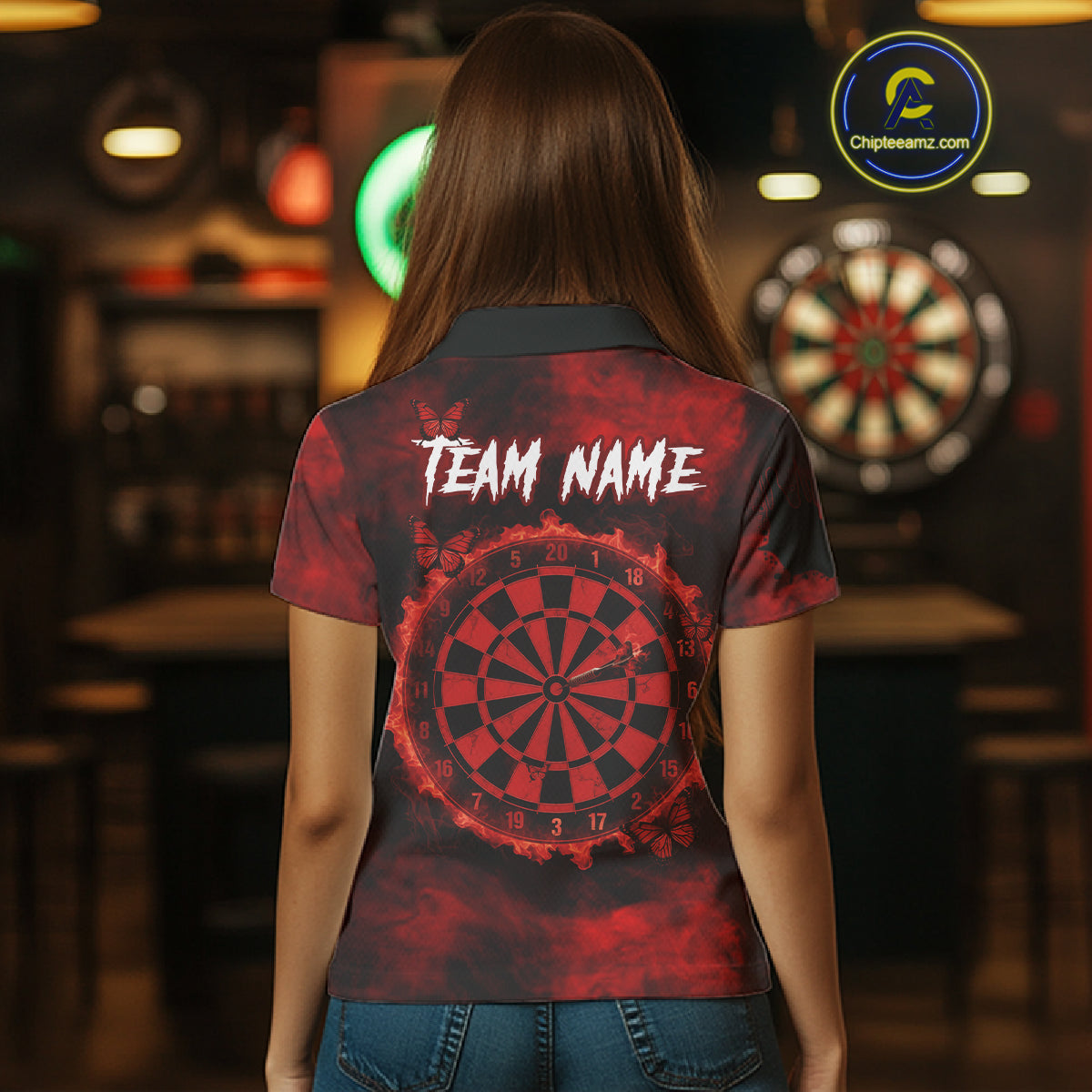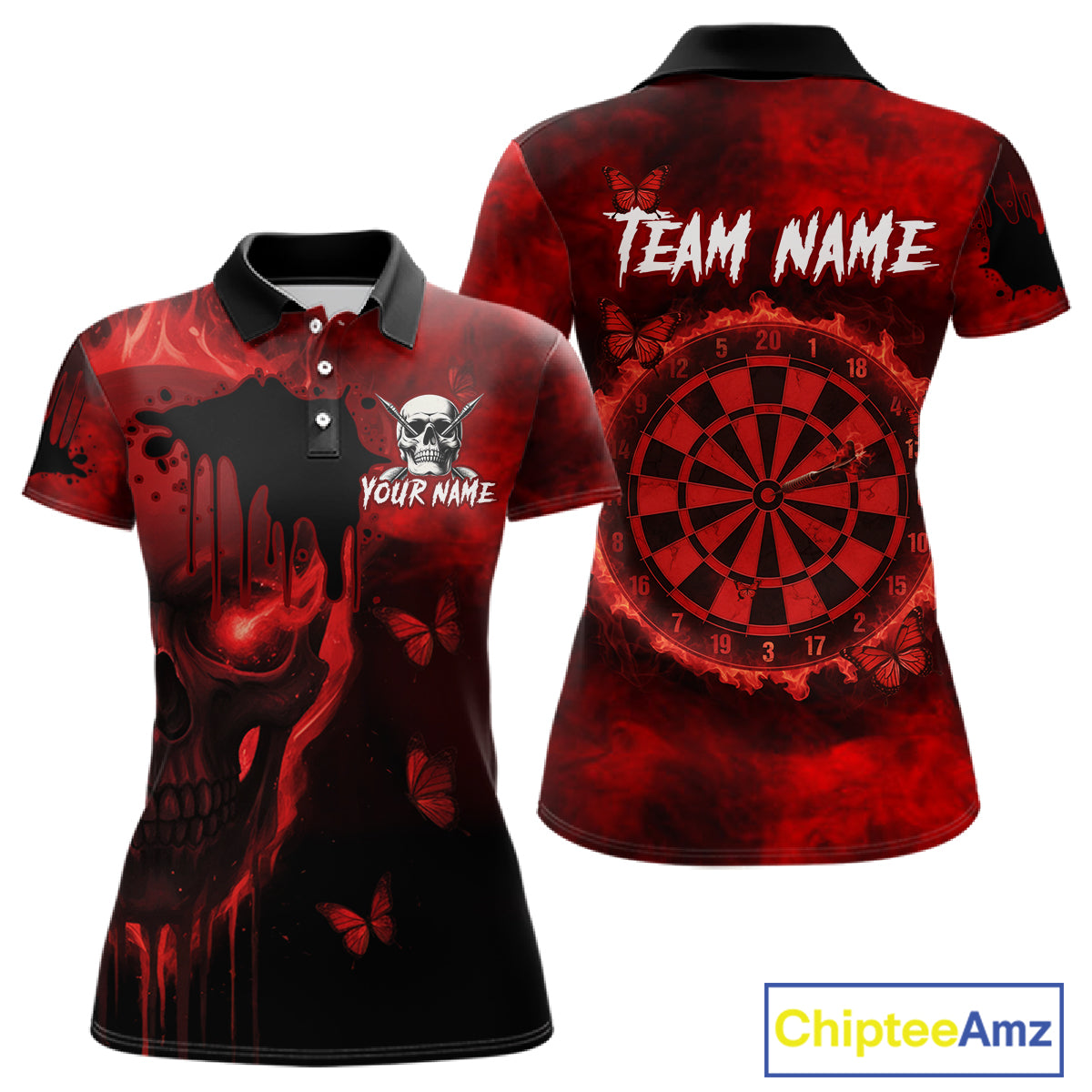 Black And Red Grunge Skull Butterflies Darts Shirt For Women Custom Darts Jersey Team Polo & 1/4 Zip TDM4992
