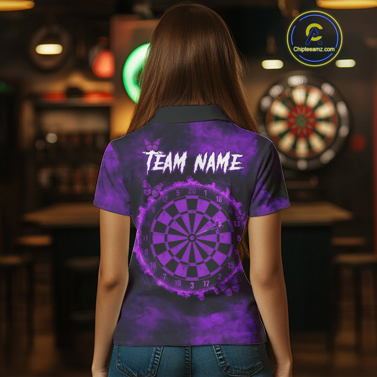 Black And Purple Grunge Skull Butterflies Darts Shirt For Women Custom Dart Jersey Polo & 1/4 Zip TDM4994