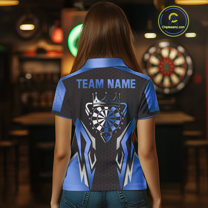 Black And Blue Funny Crown Darts Shirt For Women Custom Darts Jerseys Team Polo & Quarter Zip TDM5018