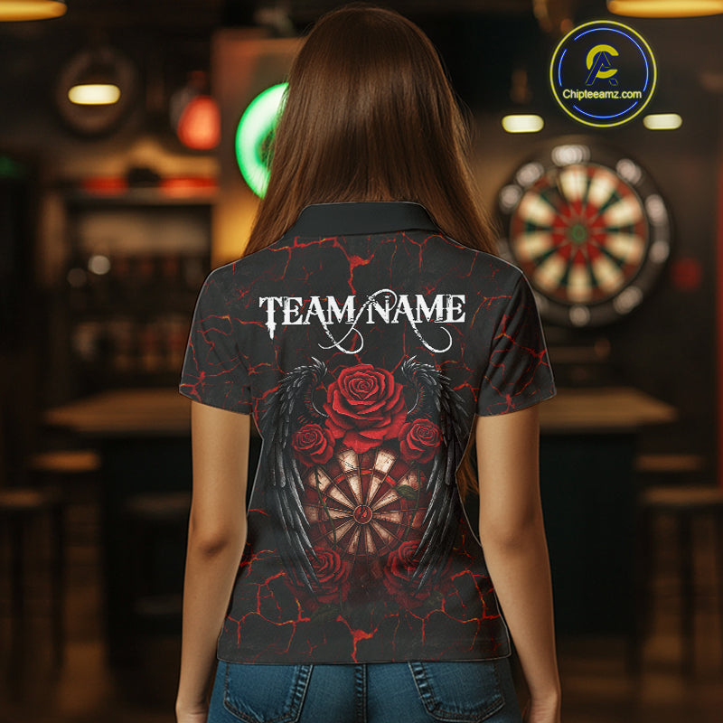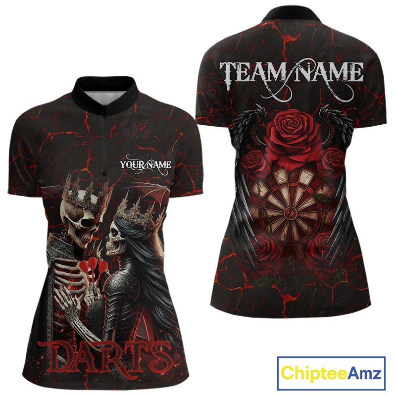 Personalized Skeleton Couple And Roses Gothic Darts Shirt For Women Custom Dart Jersey Outfit|Red TDM5038