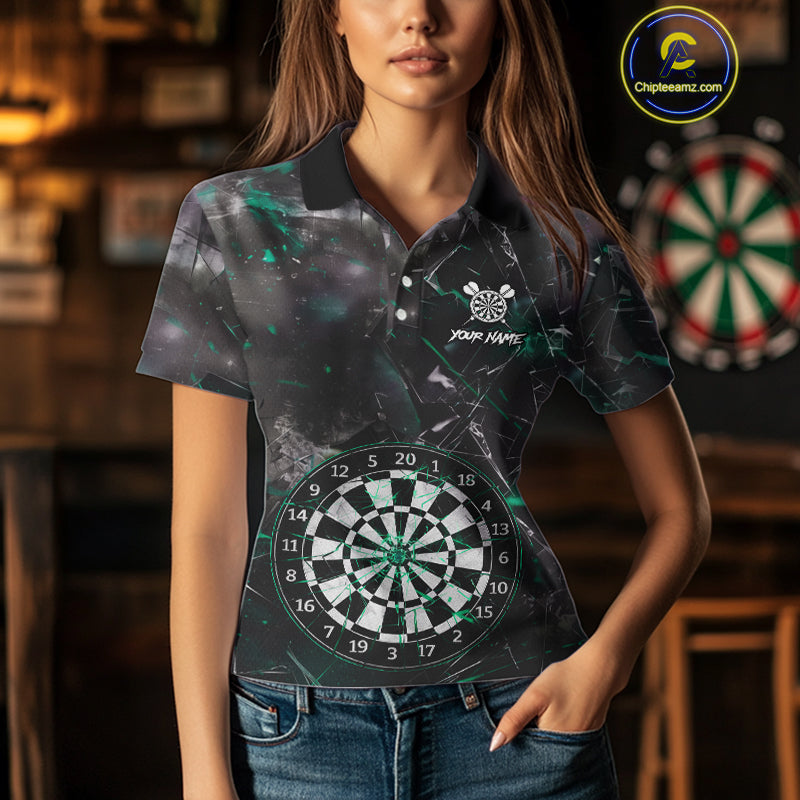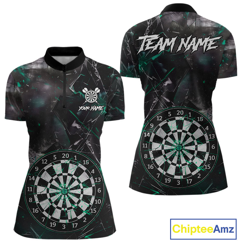 Personalized Turquoise Break Glass Darts Shirt For Women Custom Darts Team Jersey Polo & 1/4 Zip TDM5102