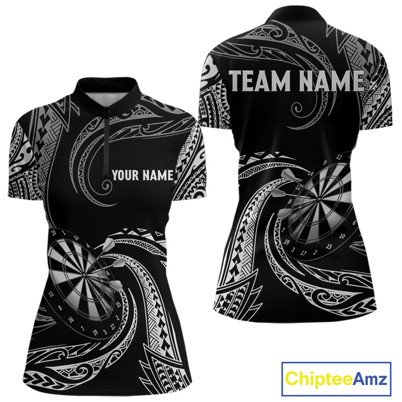 Personalized White Black Tribal Polynesian Womens Dart Shirts Custom Dart Polo & 1/4 Zip Team Jersey TDM5155