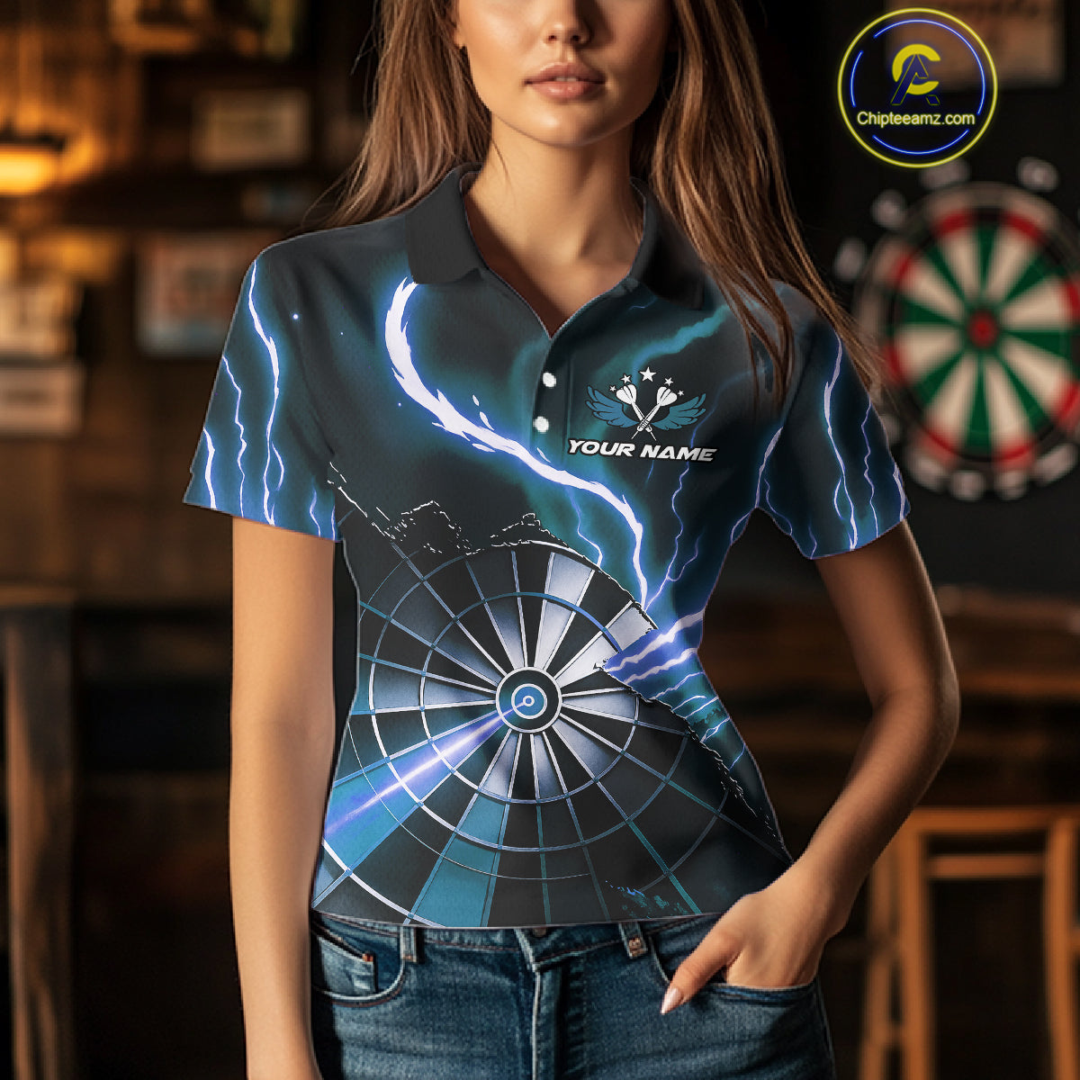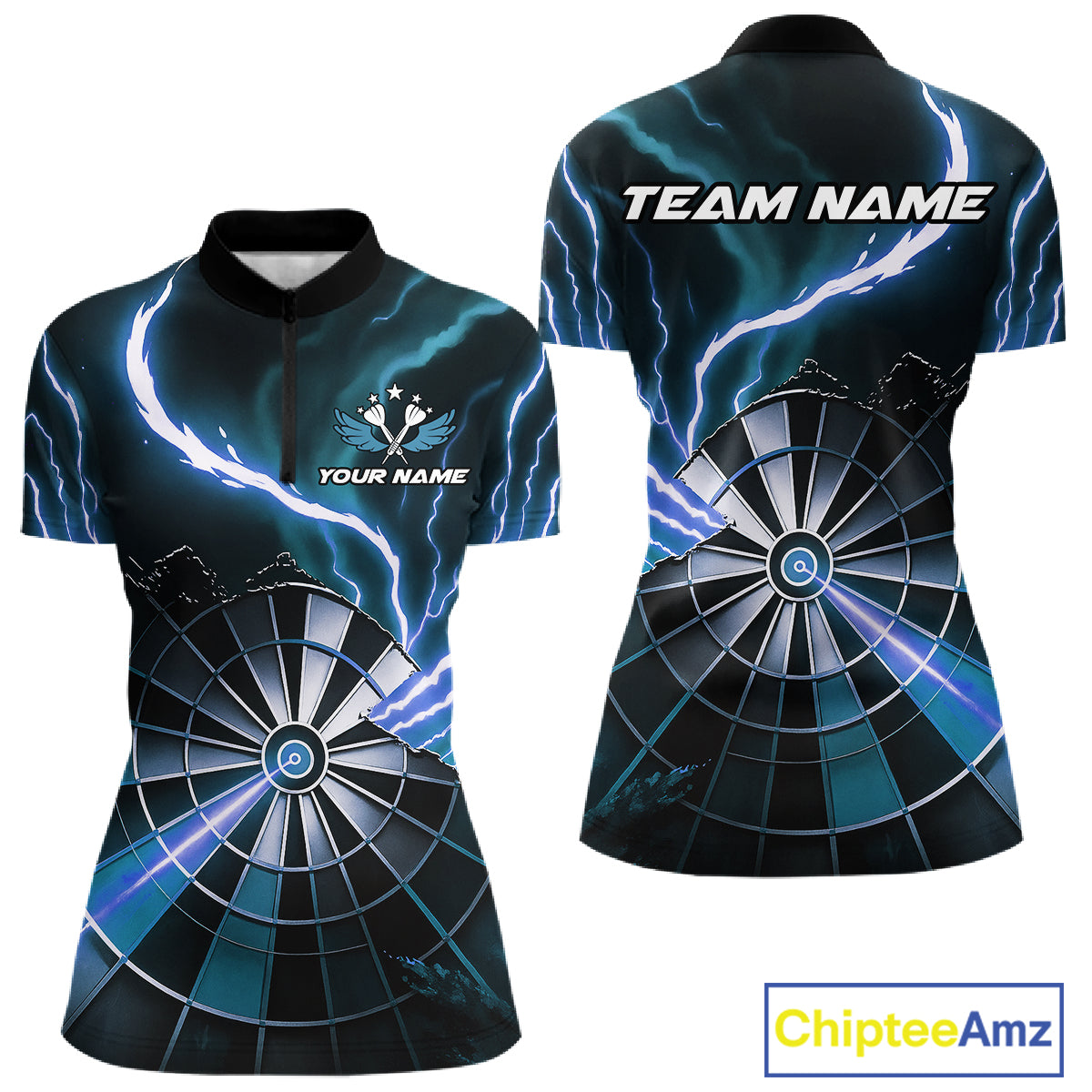 Personalized Blue Lightning Womens Dart Shirts Custom Glowing Darts Team Jersey Polo & 1/4 Zip TDM5161
