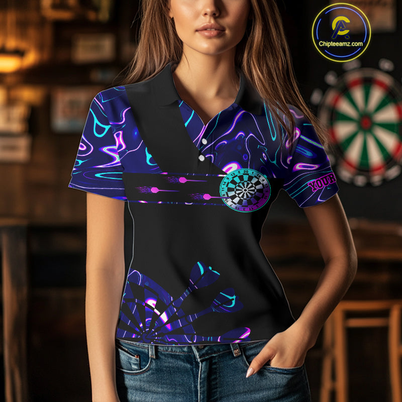 Neon Purple Blue Holographic Womens Dart Shirts Custom Glowing Dart Jersey Team Polo & Quarter Zip TDM5173