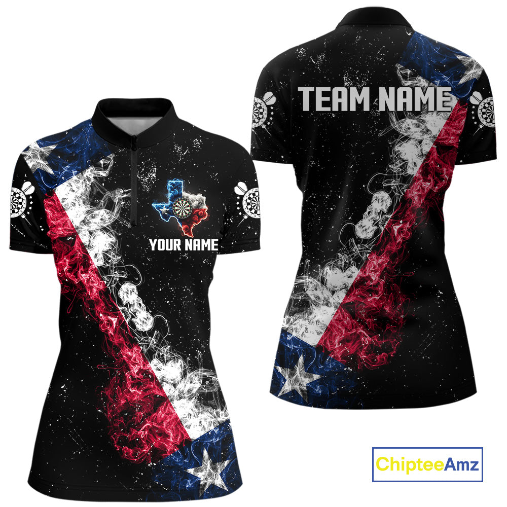 Personalized Black Grunge Texas Flag Smoke Darts Shirt For Women, Patriotic Team Dart Jerseys TDM5178
