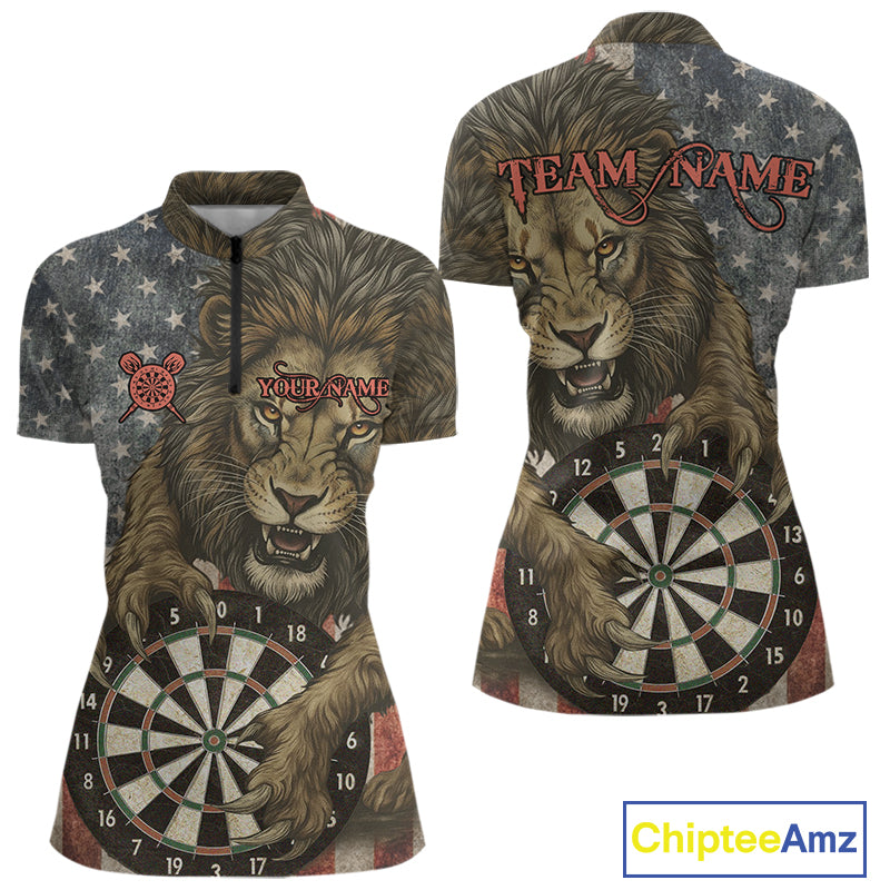 Personalized Vintage American Flag Lion Darts Shirt For Women, Patriotic Dart Team Jerseys TDM5188