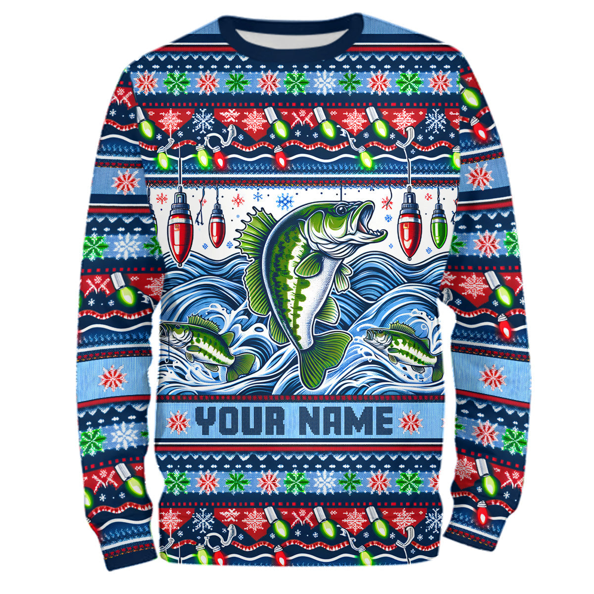 Bass Fishing Ugly Sweater Pattern Christmas Custom Fishing Shirts Personalized Fishing Gifts IPHW5561