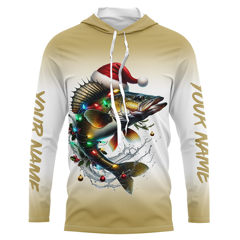 Christmas Lights String Walleye Christmas Fishing Shirts With Customized Name, Xmas Fishing Gifts IPHW5585