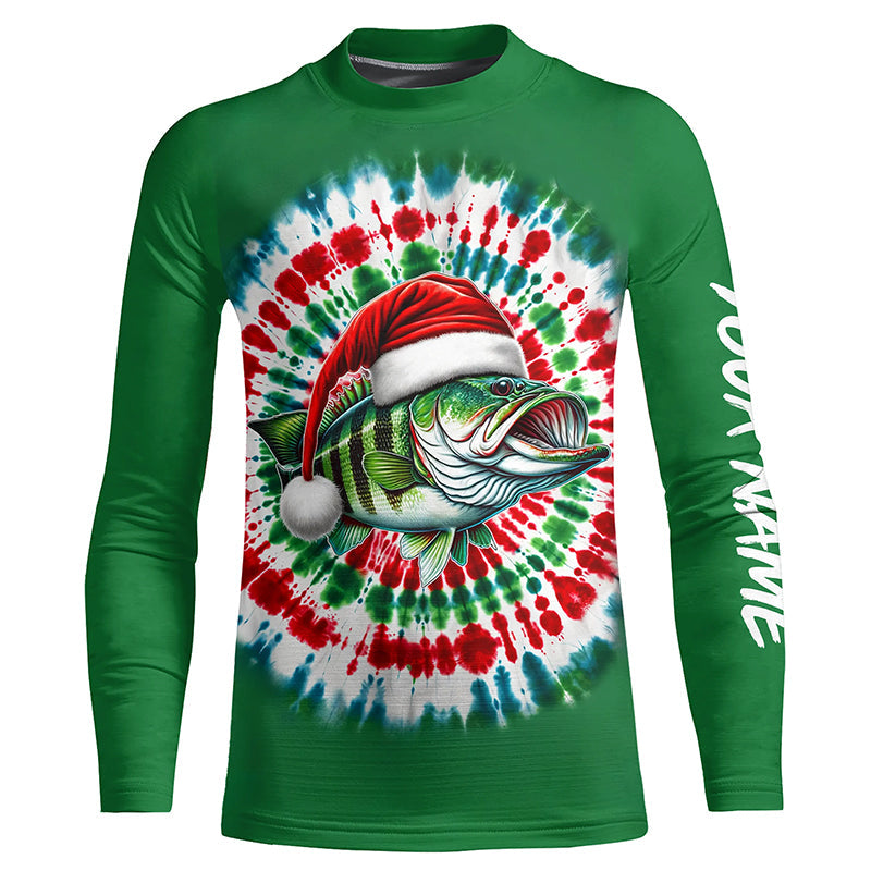 Custom Christmas Bass Fishing Tie Dye Long Sleeve Fishing Shirts, Christmas Bass Fishing Gifts IPHW5588
