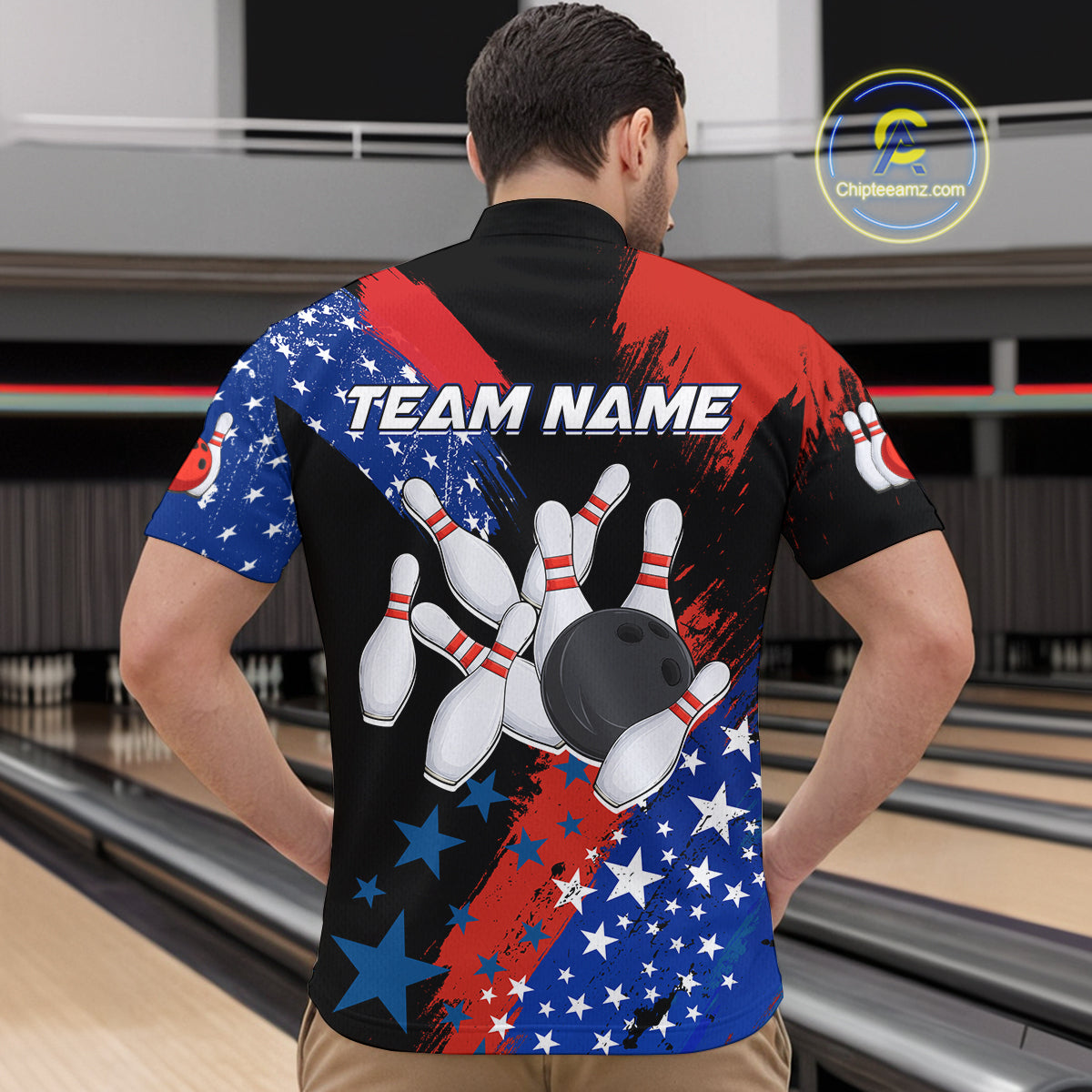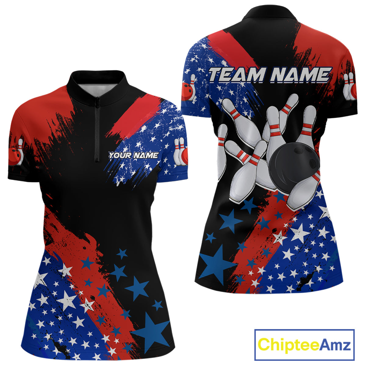American Flag Bowling Shirt Personalized Patriotic Quarter-Zip Bowling Team League Gift for Bowlers QZT691