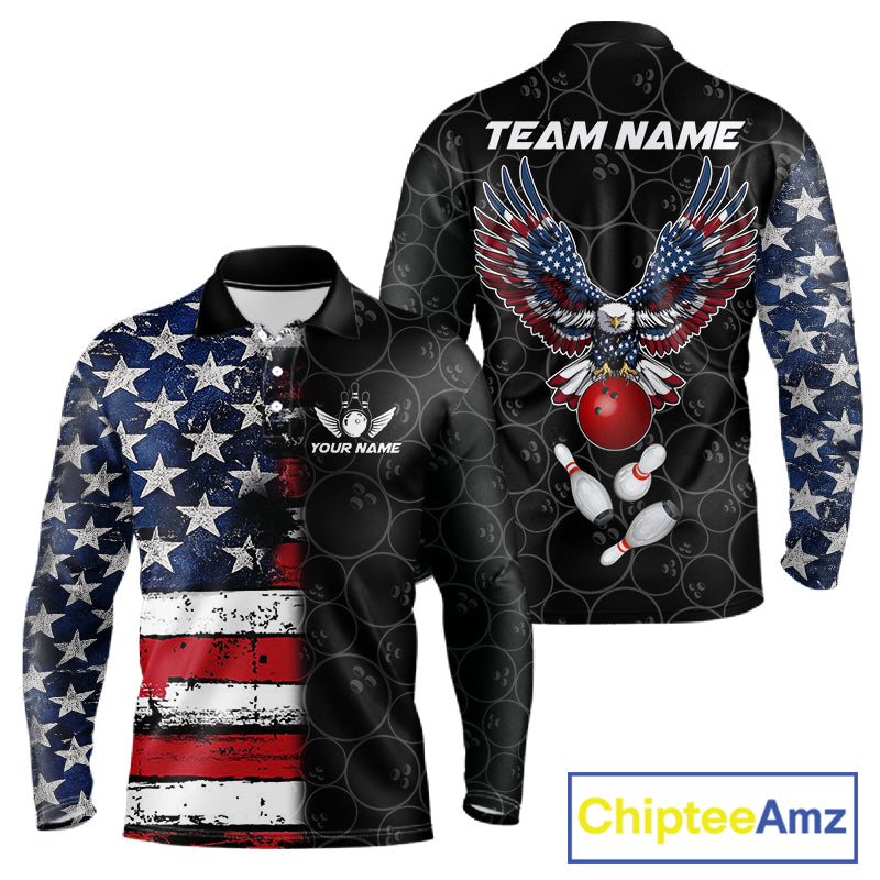 American Flag Eagle Bowling shirts for men Custom patriotic team bowling jerseys, gift for bowlers NQS11406