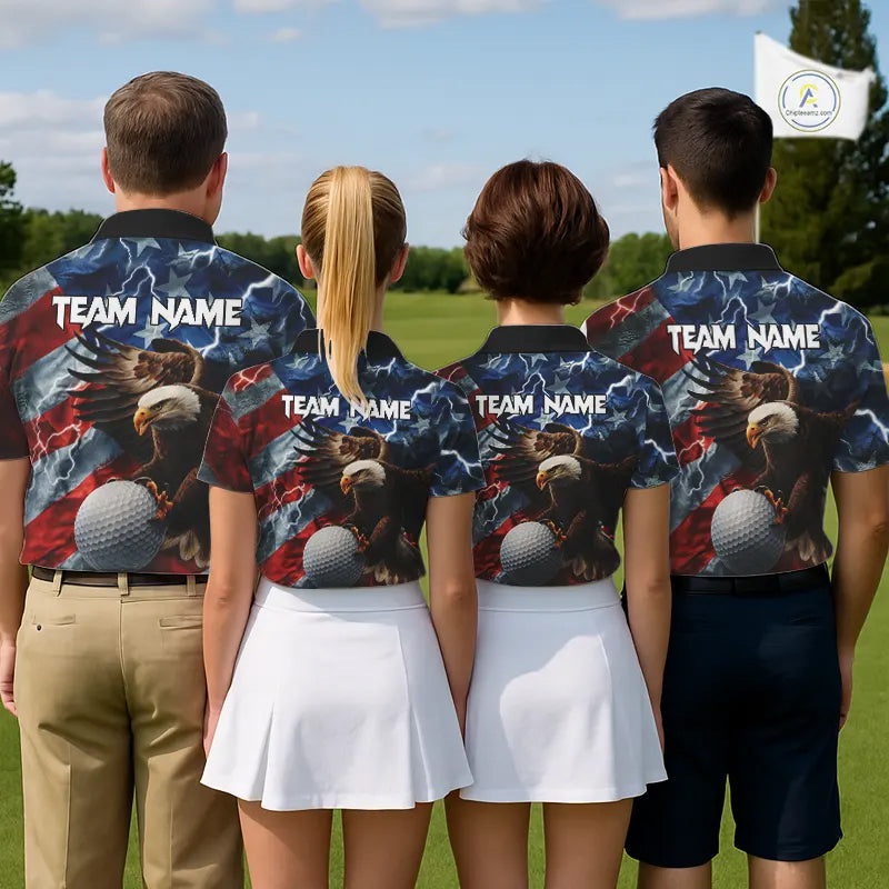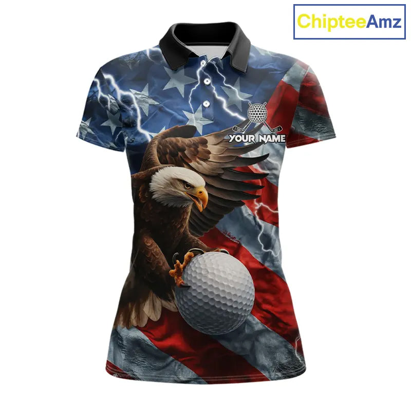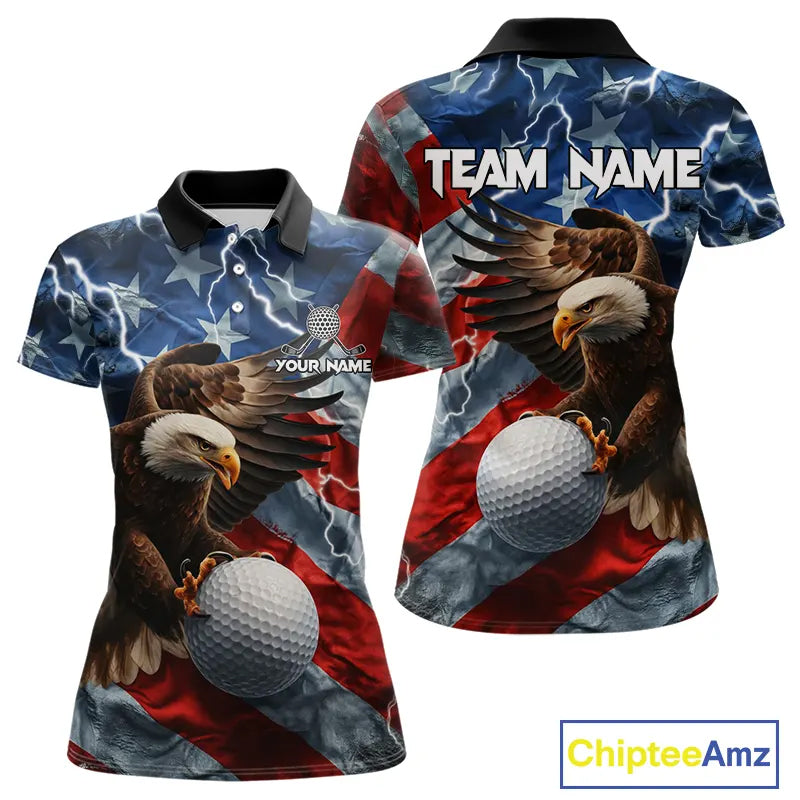 American Flag Eagle Lightning Thunder Golf Polo Shirts For Women Custom Patriotic Golf Team Jerseys NQS11503
