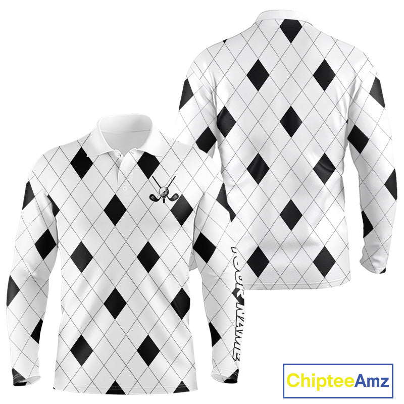 Argyle Long Sleeve Golf Polo Shirt Custom Name, Personalized Plaid Golf Shirts For Men NHN0120