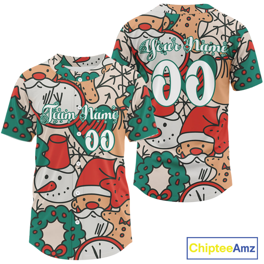Custom Colorful Funny Christmas Baseball Shirt For Men Xmas Tree Baseball Team Jerseys NYN1571