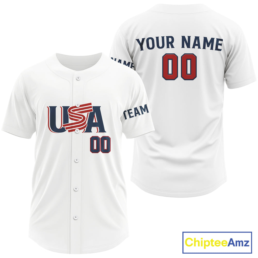 Custom Blue Red USA Flag Patriotic Baseball Shirt White Baseball Jerseys For Men NYN1578