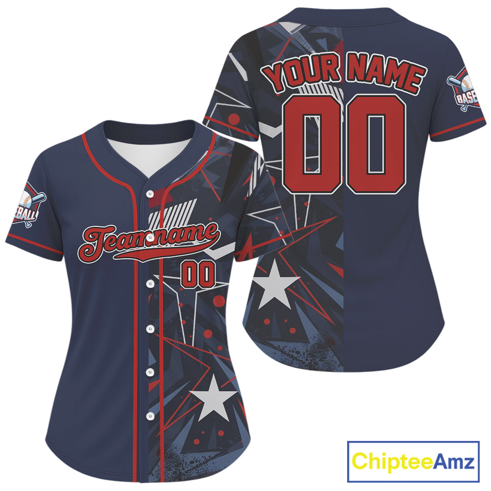 Custom Blue & Red Baseball Shirt Personalized Grunge Baseball Jerseys For Women NYN1579