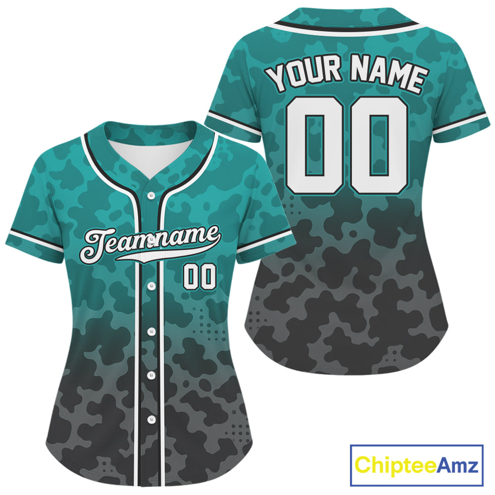 Custom Black Turquoise Camo Baseball Shirt For Women Baseball Team Jerseys NYN1595