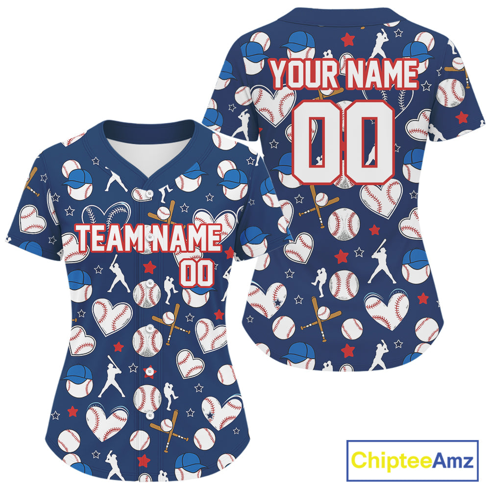 Custom Colorful Funny Baseball Ball Shirt For Women Blue Baseball Jerseys Gifts NYN1599